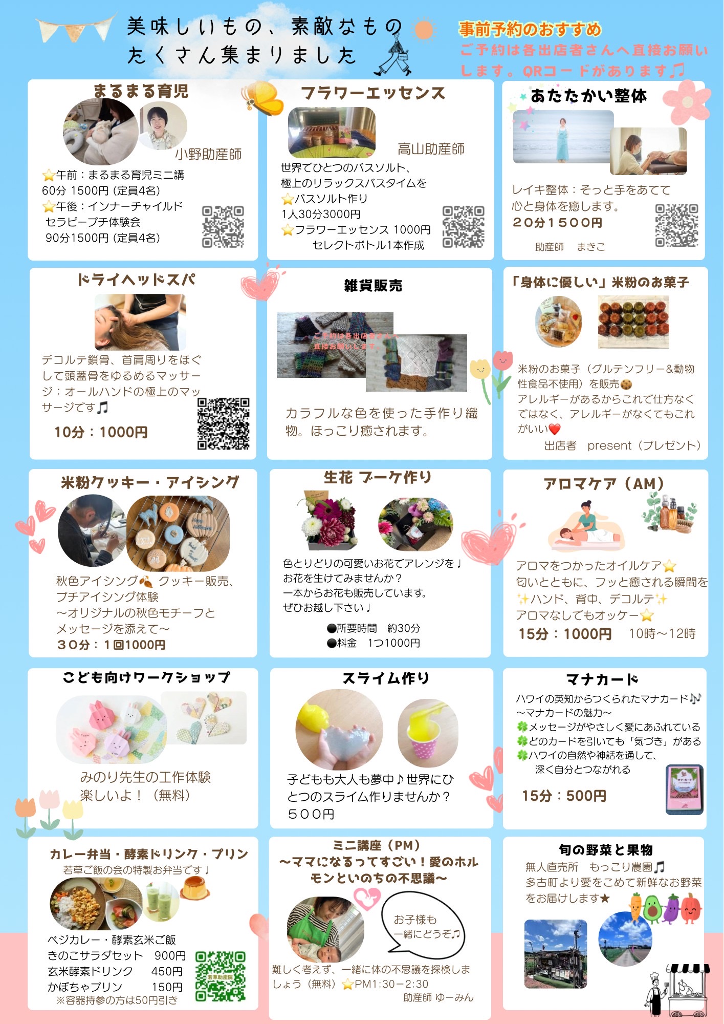 ホームイベントお知らせ 9月28日ははこマルシェ開催!お待ちしております! 2025年9月1日 2回目のマルシェです。出店多いです〜^^ ベジカレーのご予約もお待ちしております! コメントを残す コメントをキャンセルメールアドレスが公開されることはありません。 ※ が付いている欄は必須項目ですコメント ※ 名前 ※ メール ※ サイト 次回のコメントで使用するためブラウザーに自分の名前、メールアドレス、サイトを保存する。 上に表示された文字を入力してください。