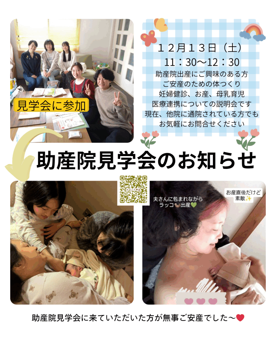 助産院での出産を検討されている方のために、助産院の見学会を開いています。